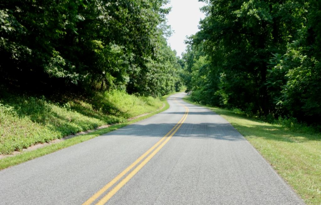 The Blue Ridge Parkway continued to be lovely and peaceful. I had thought that closer to Roanoke there would be more traffic, but this Parkway section just south of Roanoke had even fewer cars than the day before. I estimate that this whole day, going in either direction, I saw a car only about once every five or ten minutes.