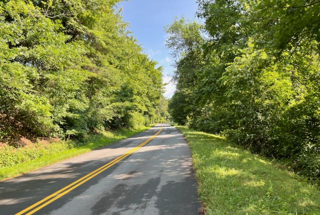 The Blue Ridge Parkway was conceived in an era when the idea of a car was still a delight, when people lucky enough to own a car wanted somewhere to just enjoy the drive. Even Robert Moses, the sometimes vilified New York City bureaucrat who tore down cities and built freeways in that same era of the 1930’s; he built parkways, although not this one. Parkways were to be something now not fashionable, a place to relax in nature while staying in your car. The Blue Ridge Parkway continues to be that kind of space, a linear National Park. It seems well maintained and keeps its founding vision that protects sight lines so that the motorist sees only mountain vistas, trees and fields and the occasional barn, never billboards or suburban sprawl or gas stations. The Parkway is routed on the high ridges to achieve the best views. I don’t know the numbers but I suspect that actual car traffic on many sections of the Parkway is down. In 2023 who goes on a car ride for a good time? Most modern drivers want to stay in a car no longer than necessary. The biggest users of the Blue Ridge Parkway now seem to be motorcyclists and drivers of specialty cars, like older convertibles, plus a few locals and some RV’s. There are definitely bicyclists but I saw less than ten per day.