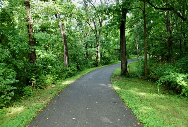 Part of the route to the airport was on a lovely wooded path called the Lick Run Greenway.