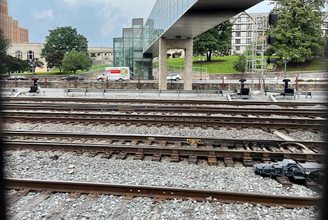 The next morning my mission was to cycle from the downtown hotel the eight miles out to the Roanoke airport. As befits a railroad town, mainline tracks bisect the downtown.
