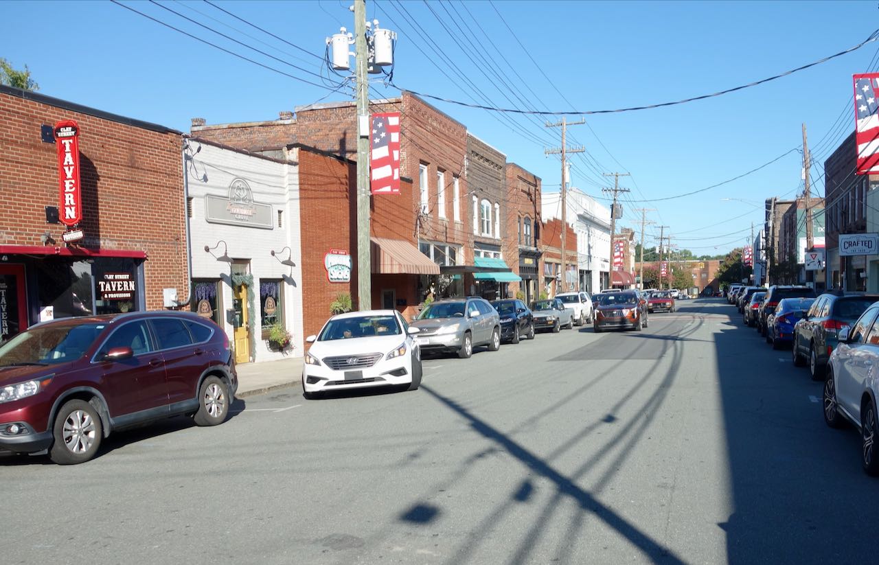 I parked on the street in downtown Mebane. Mebane still has parking like the fantasy of America is supposed to have, abundantly available and always free.