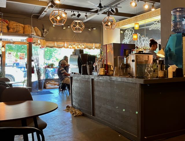 Since I had barely started I was not ready to stop for coffee but I was mildly hungry and needed to use a bathroom. On Main Street a couple of blocks from where I parked I stopped at Filament Coffee & Tea and bought an expensive but otherwise good $ 4.50 coconut banana pastry, which I ate while cycling.
