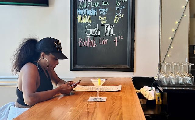 Even at 3:00 PM it was quite the scene here in downtown Greensboro; four policemen eating a late lunch, and a woman getting some kind of lemon cocktail.