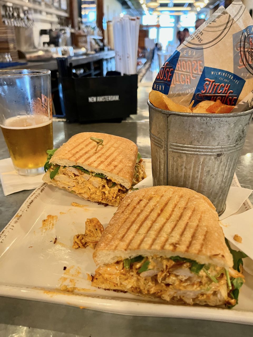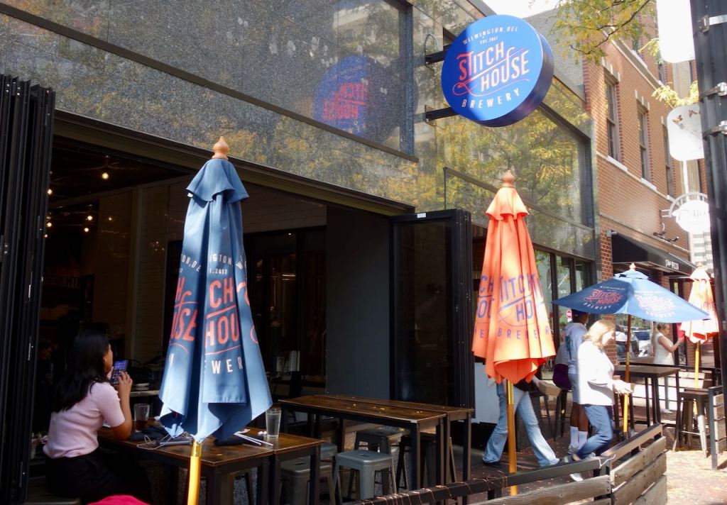 Where to eat? On Market Street the one restaurant that seemed open to the pleasant sunny afternoon and also full of people was Stitch House Brewery. They let me wheel my bicycle into the open entrance.
