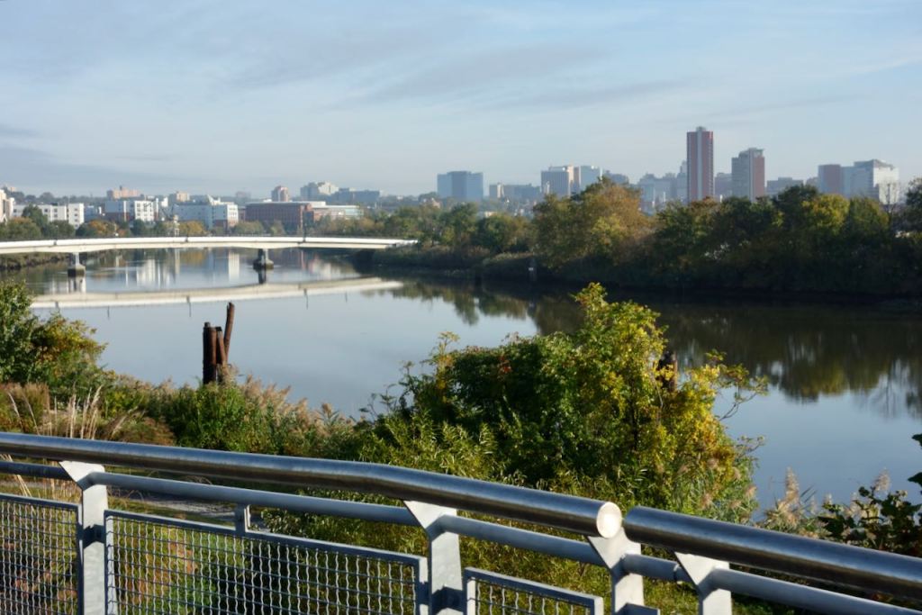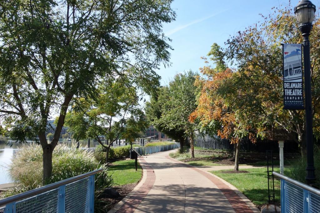 After lunch I started cycling towards Newark DE (NOT Newark NJ!) home of the University of Delaware. In a straight line it was twelve miles away but I took a more circuitous route. The Jack A. Markell trail along the Delaware River waterfront started just a few blocks from my restaurant.