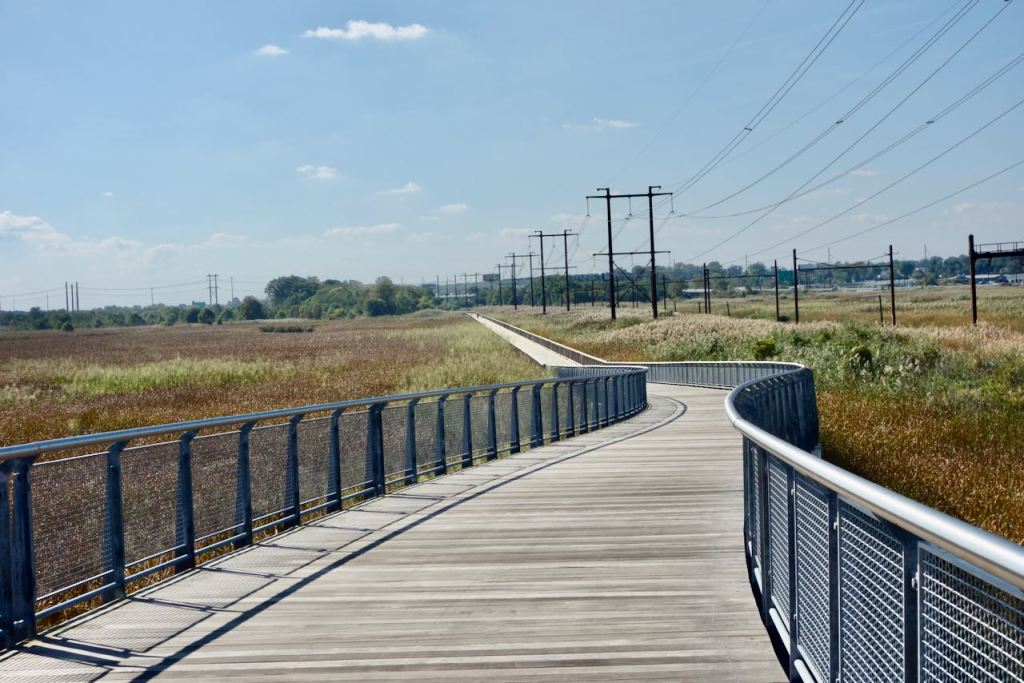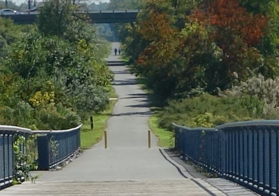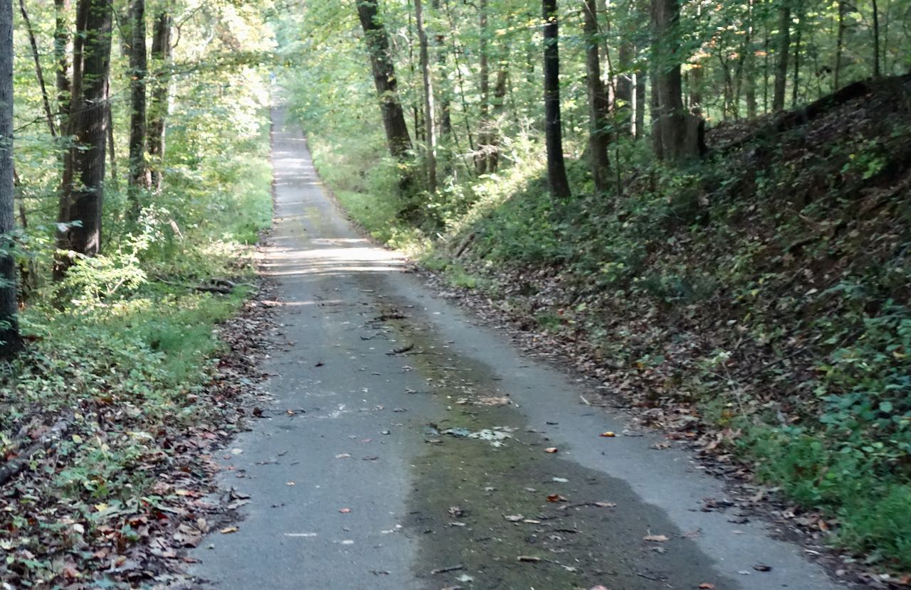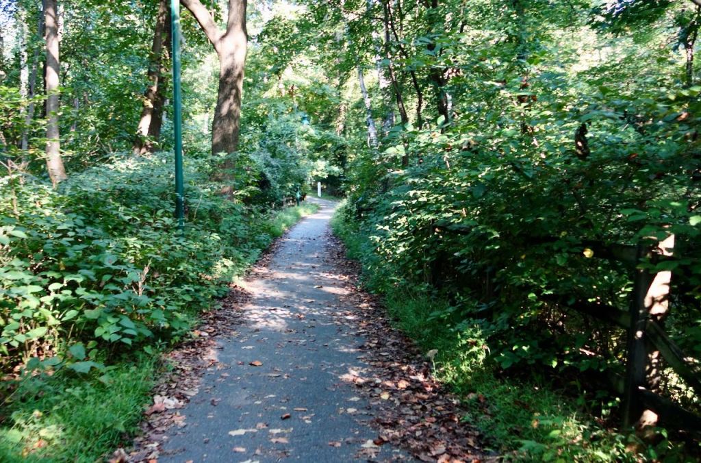 This transitions to a conventional bike trail through a woods and marshes, passing what looks like the giant remains of a landfill.