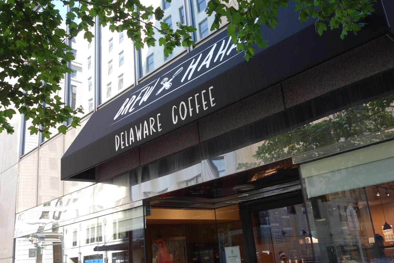 I crossed over I-95 but needed somewhere to sit and regroup. I stopped in another Brew HaHa, which occupied the ground floor of a downtown bank building.