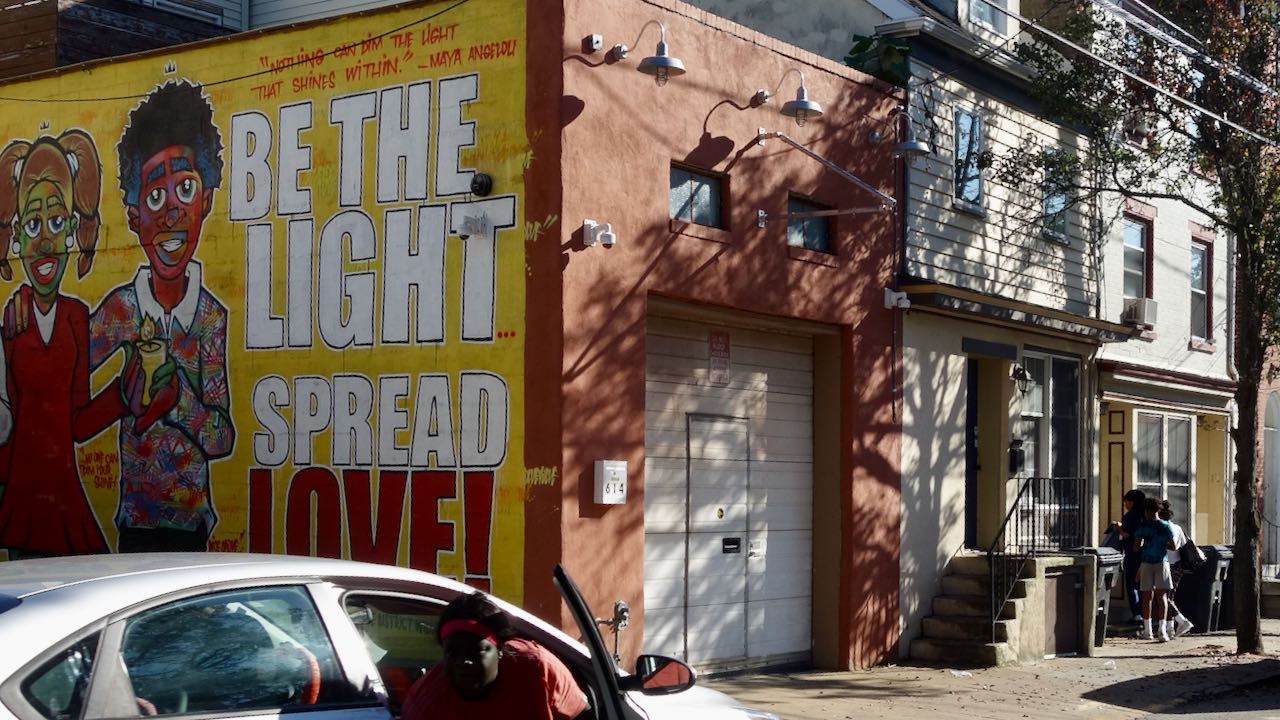Dinner! Where to go? There was indeed a selection of restaurants five blocks away on Market Street, one of the main drags. I had put the bicycle in Joel’s basement and started walking towards Market Street. I somehow got turned around and walked in the wrong direction. In the warm Indian summer evening groups of people stood on the sidewalks; young men in white T-shirts. There was a decrepit looking house with an older woman visibly upset and screaming frantically at someone in the street. I felt out of place and mildly unsafe, even though no one seemed to have had paid any attention to me. It took me a few minutes to correct my route. I ultimately ended up on Market Street, mildly flustered.