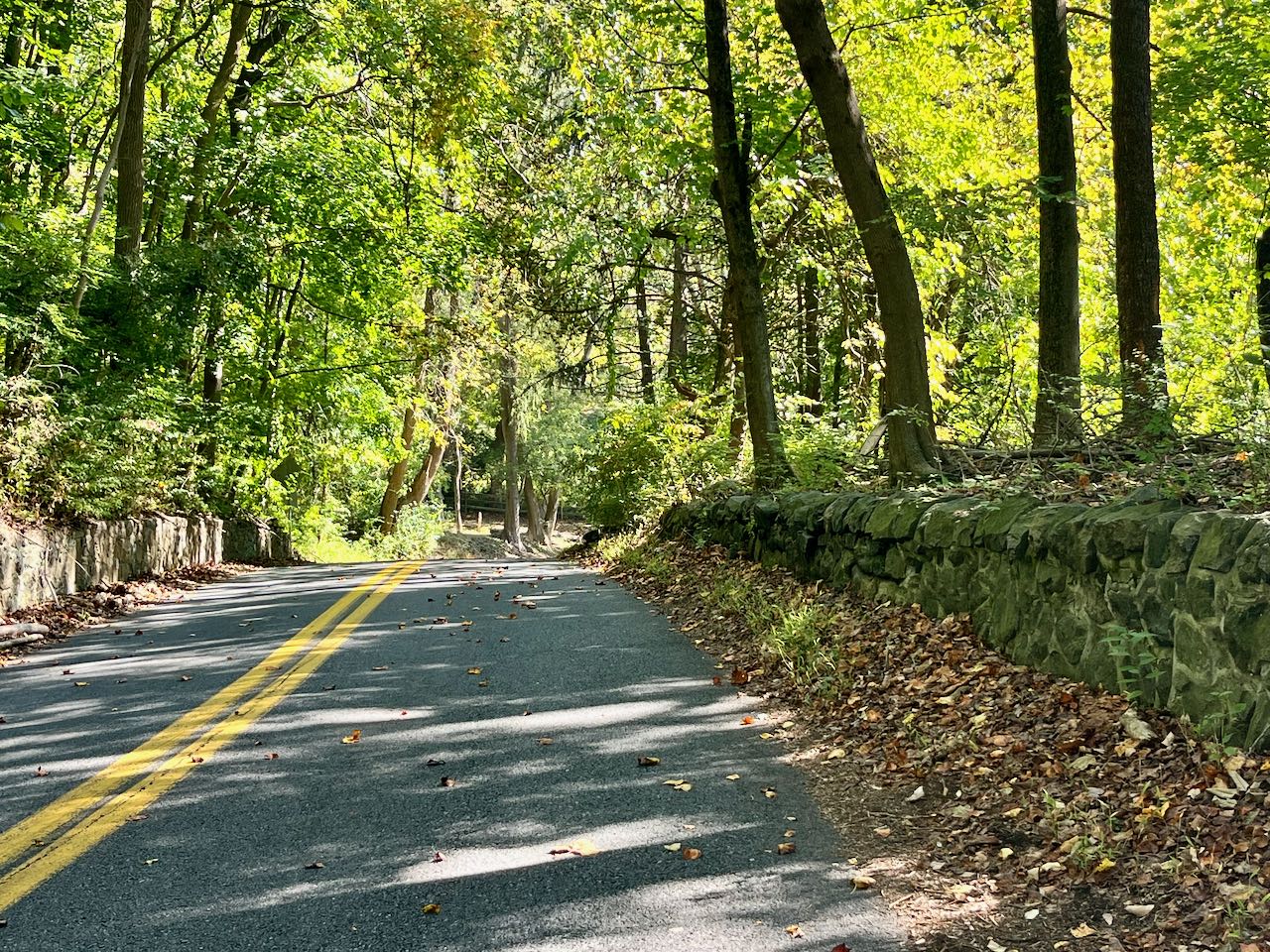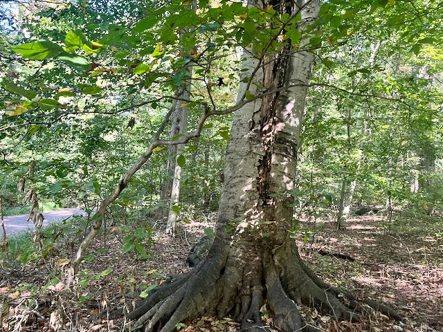 I still felt relaxed in the shade alongside a suburban parking lot but I eventually got back on the bicycle and cycled a few miles over to Brandywine Creek State Park and its paved path. In my travels I see many trees but I cannot recall seeing a forest with such a preponderance of enormous old-growth looking trees.
