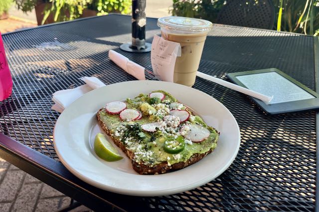 I had thought this was the only location but I now know Brew HaHa is a Delaware chain of NINE locations, all in the metro Wilmington area. Avocado toast was nicely prepared with meticulously thin sliced radishes. I washed it down with an iced oat milk latte, large, with two packs of sugar. I sat and read my Kindle, the Walter Isaacson biography of Elon Musk. Musk is a complicated guy; successfully developing save-the-world technologies in record time while displaying personal decorum like a total asshole. I am just getting to the part where he buys Twitter.