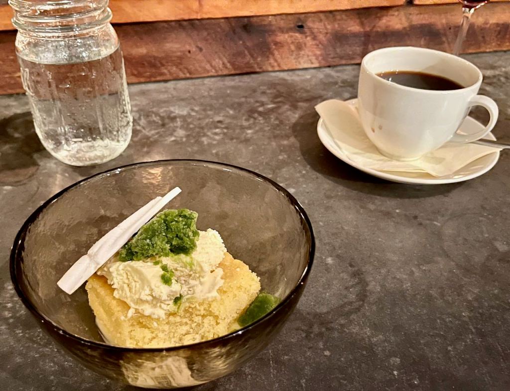 My dessert was the Japanese and Italian named Yuzu Semifreddo Olive Oil Cake. And a decaf.