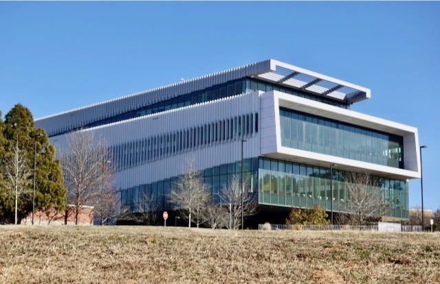 Kirsten lives in a condo complex associated with the NC State University “Centennial Campus.” I had not realized how huge this research campus is. It is separate from the older NC State campus and was developed starting in the 1990’s on a giant tract of surplus state-owned land still only two or three miles from downtown Raleigh. There are large office buildings for private research companies with open spaces, plus bike paths everywhere. I cycled northward through this development, heading towards the conventional NC State campus.