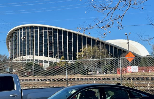 There is not an easily plotted bicycle route from any part of Raleigh back to Chapel Hill. The state agency NCDOT is among the most powerful state DOTs in the country and while they throw bicyclists a special lane now and then, their central planning exhibits complete contempt for those attempting to travel in any manner other than the automobile. Over the years I have developed a complex work-around route to cycle from Raleigh to Chapel Hill, and it indeed does avoid most of the traffic, most of the time. It goes from Raleigh’s Hillsborough Street to Beryl Road, then cuts across the state fairgrounds to Trinity Road. NC State has always had an excellent architecture school. On those fairgrounds I cycled by Dorton Arena, from all the way back to 1952, a magnificent example of postwar modernism. The building exudes optimism.
