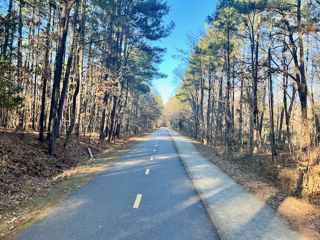 Here in far western Cary NC, on the Wake County / Chatham County line, a lovely rail trail is just about half a mile away. I cycled over to the American Tobacco Trail.