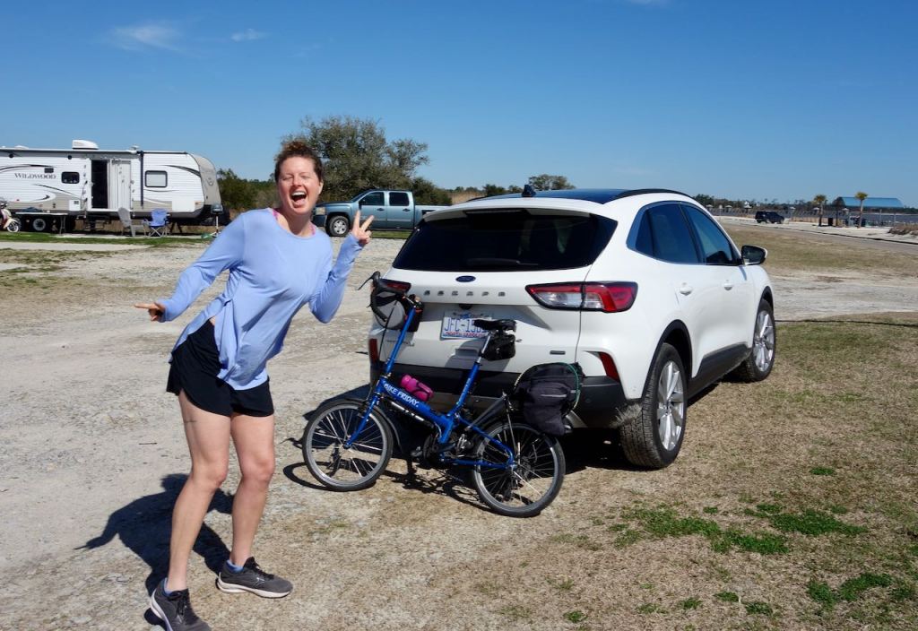 We had planned to take an Uber the sixty-something mile drive from New Orleans to Waveland but Aubrey, a friend of Tootie’s and mine. offered to do it for the same price. She dropped Lyman and me and our bicycles at a beachfront campground.