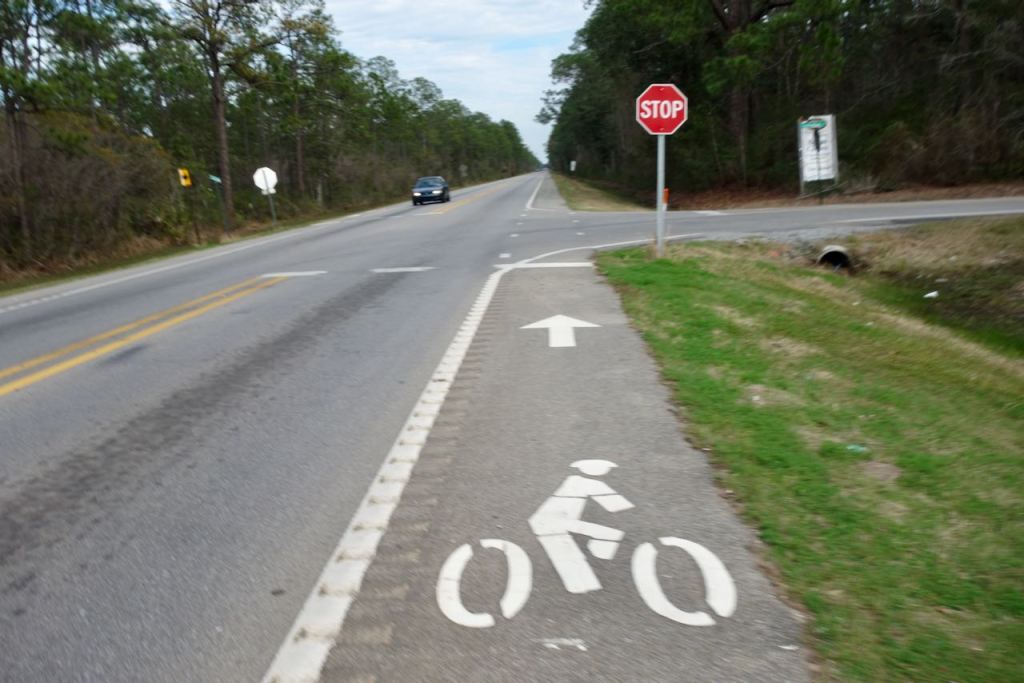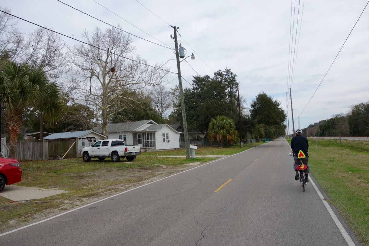 We then turned south to cycle on an Alabama state highway that threaded through their bayou country. There is lots of discussion among bicyclists about rumble strips. The bumps in North Carolina are small enough not to upset a bicycle but in Alabama on some narrow roads the rumbles felt like boulders, forcing a bicyclist to stay out in the travel lane.
