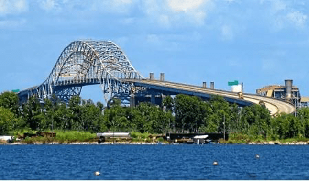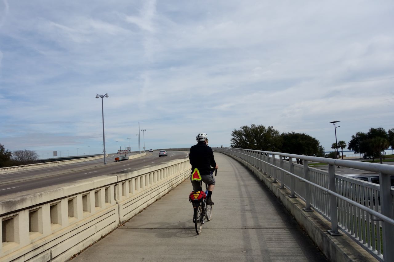 The bridge over Biloxi Bay from Biloxi MS to Ocean Springs MS has a cheery bike and pedestrian lane.