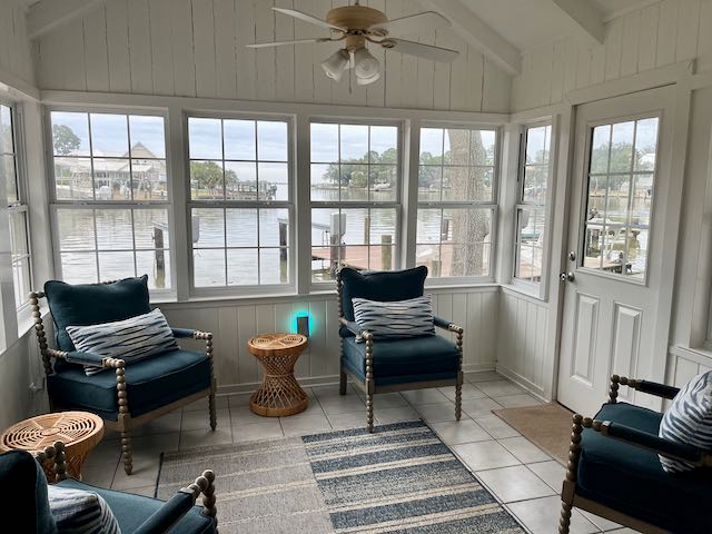 The Airbnb three bedroom sound-facing waterfront house had a fetching view. The apparently concrete slab house certainly must flood with every storm. It is comforting that this is not my problem. It rained all afternoon and night and into the morning.
