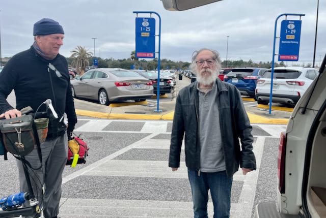 That morning a cold front was blowing in. Temperatures were in the low fifties and dropping with a steady rain and a twenty MPH headwind. While the rain was predicted to lessen the headwind was not. Did we really want to bicycle back across that causeway in those conditions? Hmmm. Maybe we could buy our way out of this situation. One way rental cars were available at the Mobile airport. We had folding Bike Fridays they would fit in almost any vehicle. Let’s get an Uber! We entered our info into the Uber app but it soon became apparent that we were out of Uber range.