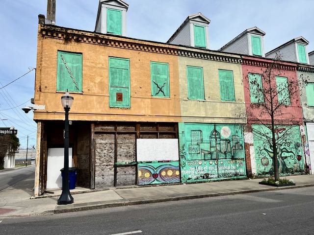 In September 1964 the Beatles played New Orleans at the height of Beatlemania. Some worrywart decided because of screaming crowds the Beatles were not safe at a normal hotel and arranged for them and their entourage to stay fifteen miles from downtown out on swampy Chef Menteur Highway in a motel called the Congress Inn. Beatles were quoted as being disappointed they could not see the city. Their only other New Orleans wish, which was granted backstage, was to meet Fats Domino. Now in 2022 we cycled by the abandoned ruins of that motel. The scene was quiet; no people around, still surrounded by marshes.