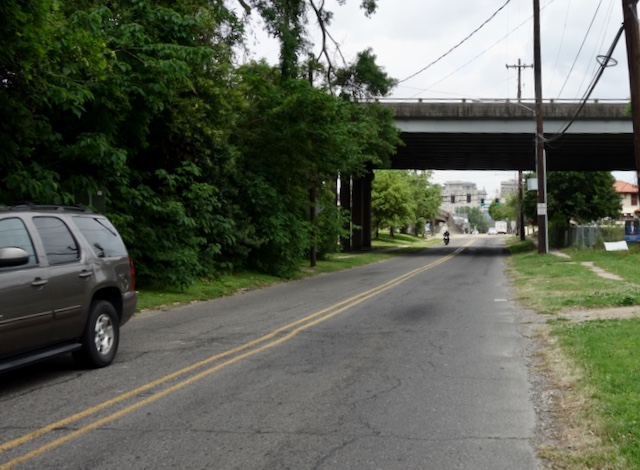 I passed through Spanish Town rather quickly before cycling over a bridge crossing I-110. I suddenly was in a poorer formerly industrial area with a couple of abandoned factories. I cycled onward, not really knowing where I was going. There clearly are large sections of urban Baton Rouge that are impoverished. I had seen an area to the south on the map called Garden District, I headed in that direction. Near the point where the vacant industrial land ended and the Garden District began I passed Leola’s Cafe where well dressed people were brunching at noon on a Sunday. I thought about stopping but needed to cover more ground to meet my 2:00 PM departure. I had eaten my peanut butter and jelly sandwich in the car driving to Baton Rouge and I was not hungry yet.