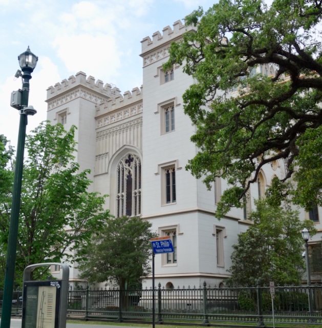Having driven eighty miles across flat swampland from New Orleans to Baton Rouge, my first and biggest impression was topographic. Baton Rouge has hills! New Orleans is unimaginably flat. Most of the rest of south Louisiana also seems built on muck. From Wikipedia: Baton Rouge area owes its historical importance to its strategic site upon the Istrouma Bluff, the first natural bluff upriver on the Mississippi River Delta from the Gulf of Mexico.