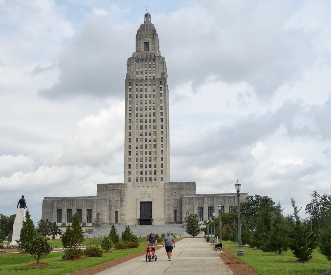 Just under a mile further north is the big attraction, the current Louisiana State Capitol building. First proposed by just elected governor Huey Long in 1928, the building was built quickly under suspicious financing and opened in 1932, three years before he was assassinated in 1935. . It sits on a huge plot of land on the north side of downtown.