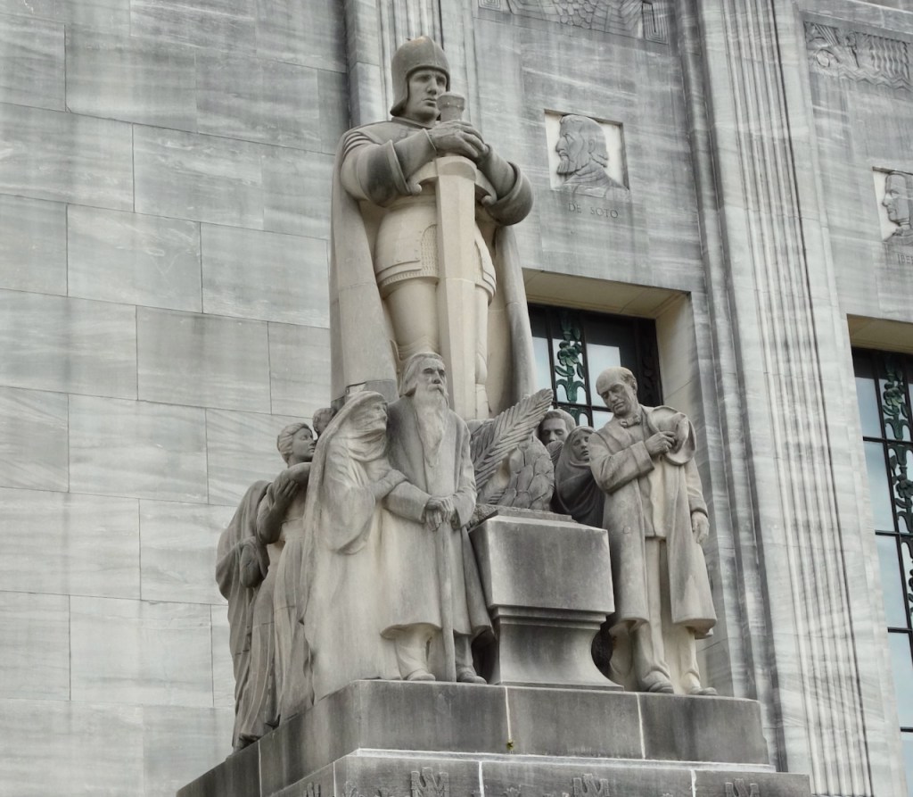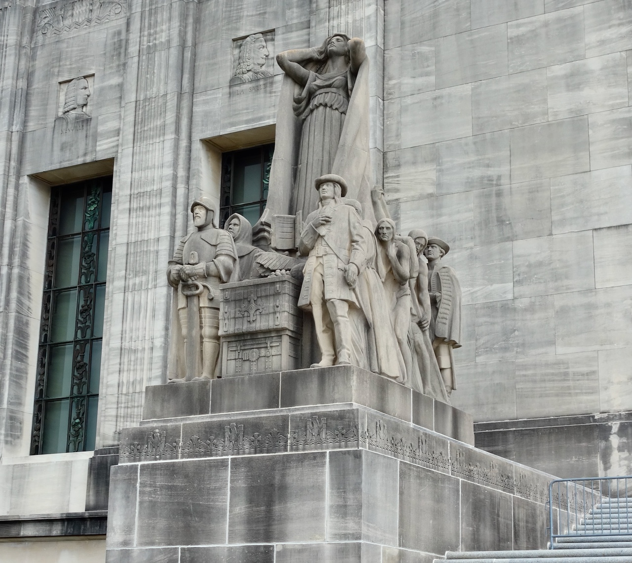 With hardly anyone around I dropped the bicycle and walked up the steps, examining two sculptures by Lorado Taft which in their monumental art deco-ness I find somehow creepy.