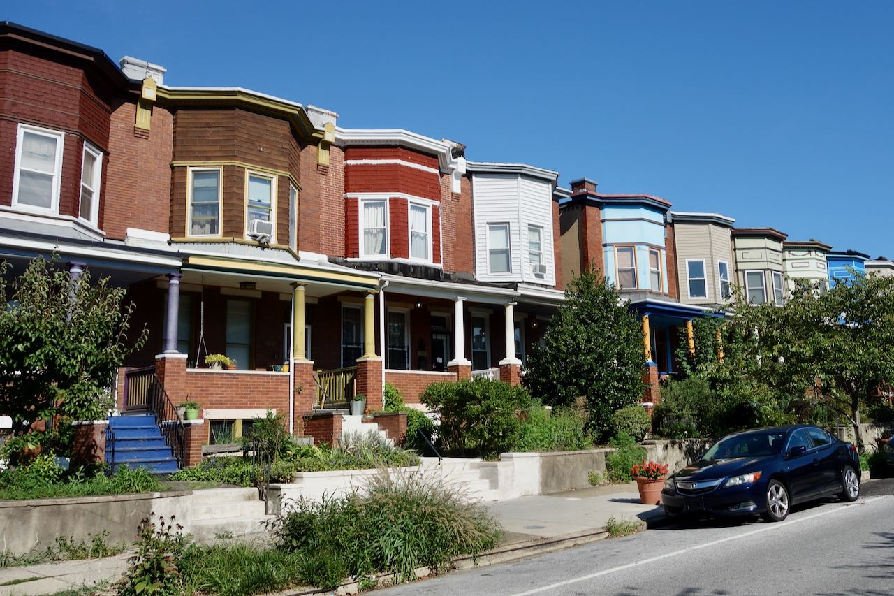 The next morning I planned a big bicycle loop around Baltimore, first riding north. The north side of Baltimore traditionally has been its preppy and more prosperous side. These row houses were just north of the Washington Monument and my hotel.
