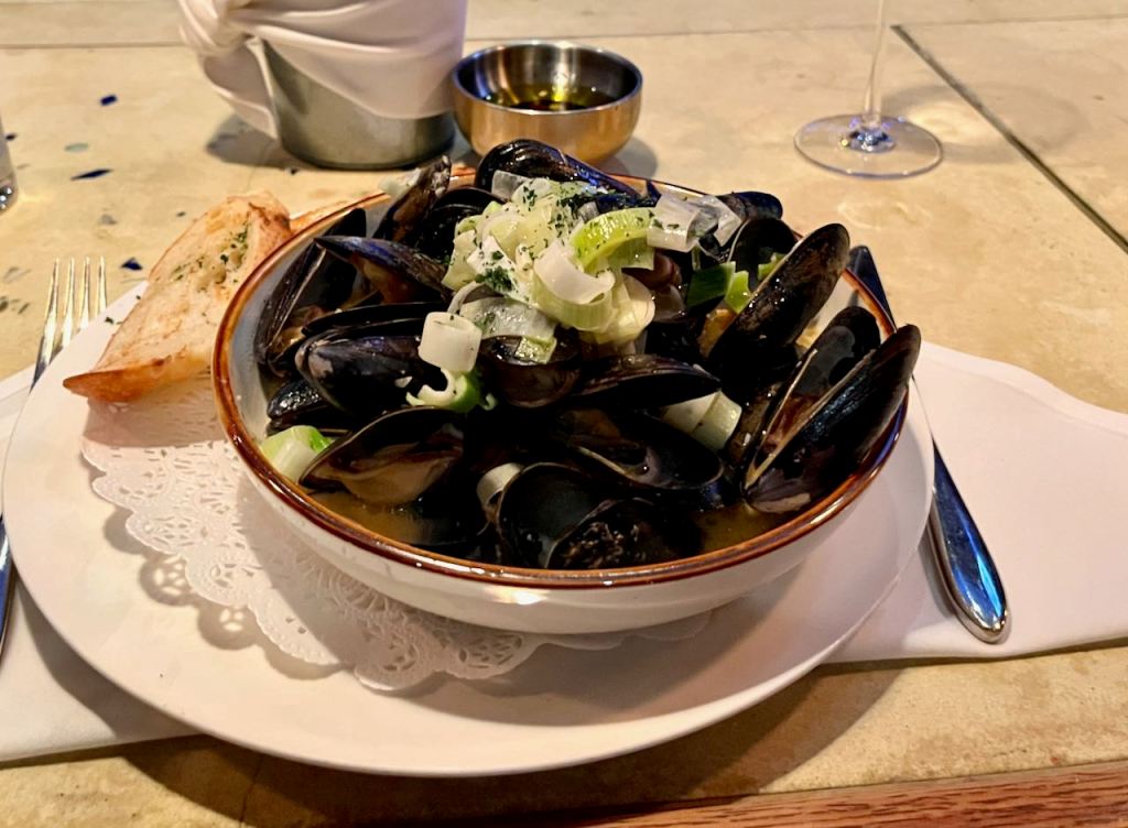 Instead of an entree I ordered two appetizers, mussels in white wine and cream, and fried calamari.