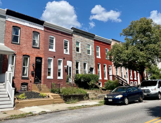 Cycling north one could see the transition as the city grew in the twentieth century; older row houses to newer row houses to suburban houses. In a neighborhood called Charles Village these row houses were built in the early 1900’s.