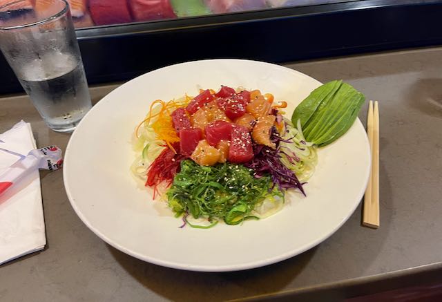 That evening I had poke in the Mount Vernon neighborhood. I had never ordered poke at a sushi place before, but poke is really just deconstructed sushi rolls. The green blob to the upper right is avocado. It was all delicious.