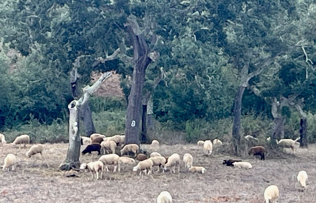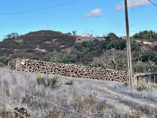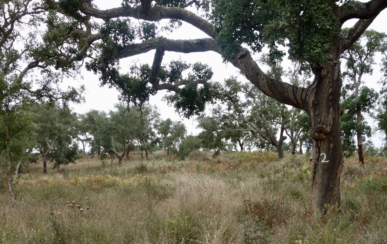 Alex wanted to stay off even slightly busy paved highways and had plotted a route on mostly gravel roads. The cork industry here is ubiquitous. Cork trees are scattered about haphazardly on the landscape. Every nine years they strip the bark for wine corks, then paint the last digit of the year to remember how long it has been.