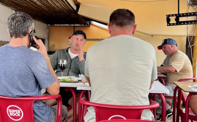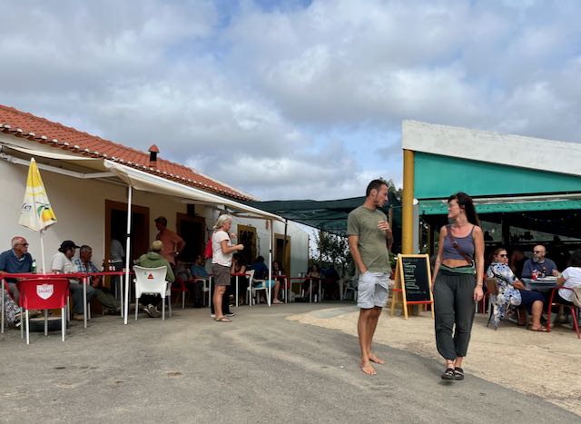Alex guided us toward lunch at Pizza Domingo; in the middle of nowhere, run by expat Israelis and open only on Sundays. It was crowded; quite the scene and we were lucky to get a table. The outdoor restaurant is next door to a bar frequented by mostly male locals while the pizza crowd seemed mostly non-Portuguese Europeans. You walk a few feet over for your drinks. Europeans of all stripes seem to favor small individual pizzas, not the giant share-all that Americans practice. The pizza was delicious.