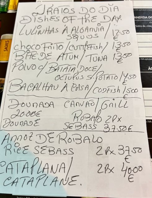 There was not much nightlife on the narrow Portuguese streets of Boliqueime that rainy evening. Liveliest seemed to be a pub called (in English) Bill’s Bar and Grill. There were several “English” people hanging at the bar when I walked in, until I realized they were speaking German! Most others did indeed seem to be British. The scene was cordial. There must be a community of retired expats here.