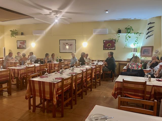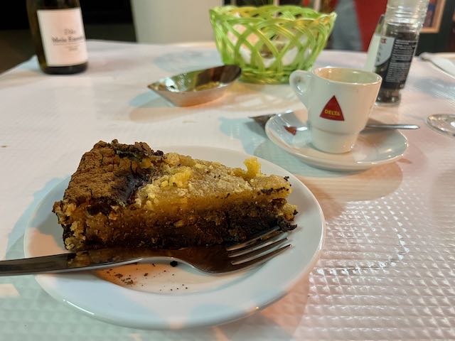We finished it all off with dessert, then cups of expresso coffee. The guy poured us each a complimentary shot of the local clear powerful aperitif. Life was grand.