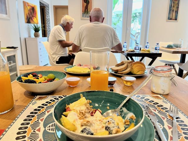 On my trip to France last year, Lyman and I thought we were being cute by surreptitiously “stealing” bread, ham, and cheese from hotel breakfasts for picnic lunches on the road. Here at Odeceixe Verde, without asking, the proprietor handed each breakfast guest a plastic box and plastic bag, inviting us to take as much carryout as we liked!