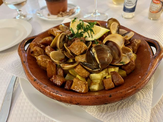 My main course was something I had been wanting to try, a specialty of both the Alentejo and Algarve regions of Portugal; pork with clams.