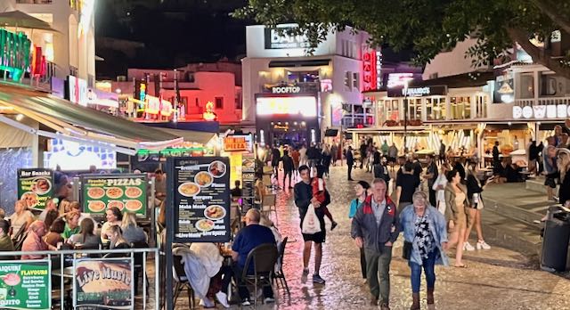 About 8:30 PM I walked around old Albufeira. It was a Wednesday night, off season, but even then a largely British crowd was raucous, singing to 70’s American music. This video is only seventeen seconds long.