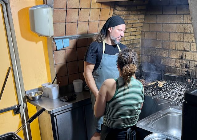 In addition to the regular kitchen there was a guy grilling.