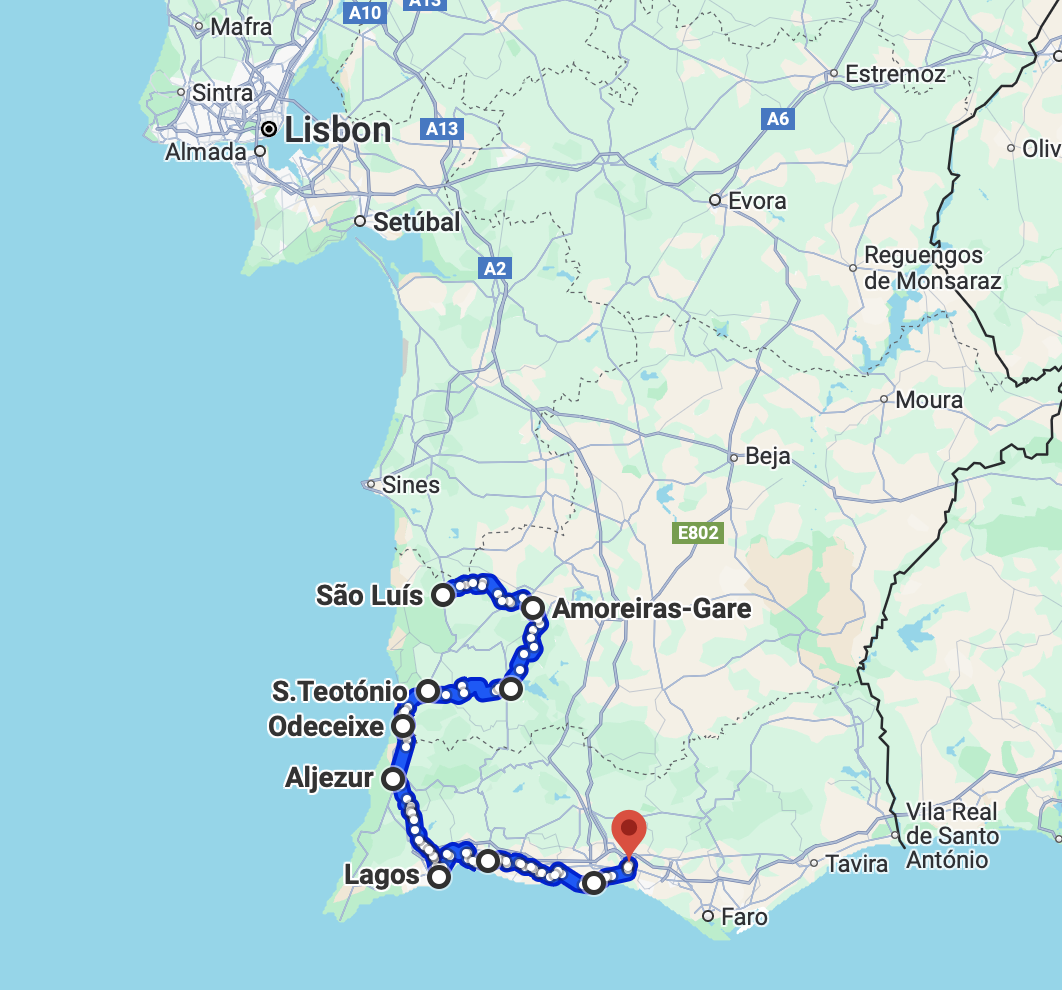 My brother Alex lives in a medium sized seaside town in the Alentejo region of Portugal, two to three hours drive south of Lisbon, about halfway down the coast. I started my bike trip there with him.