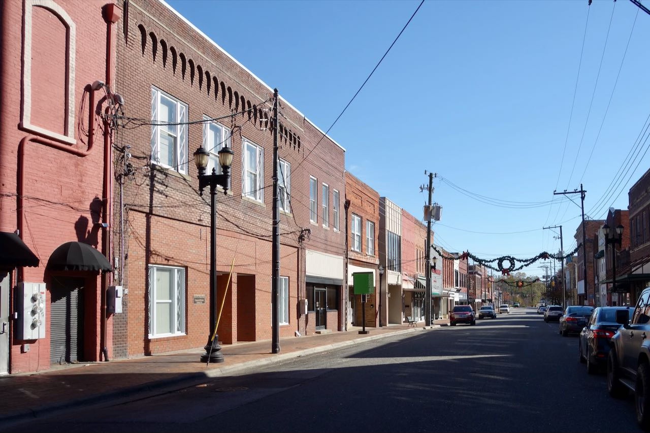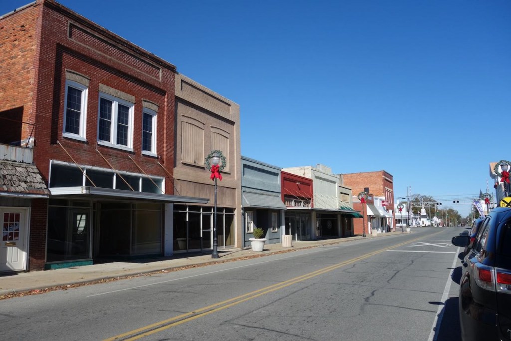 I headed east through downtown Goldsboro. There were holiday wreaths up. Not every storefront was empty.