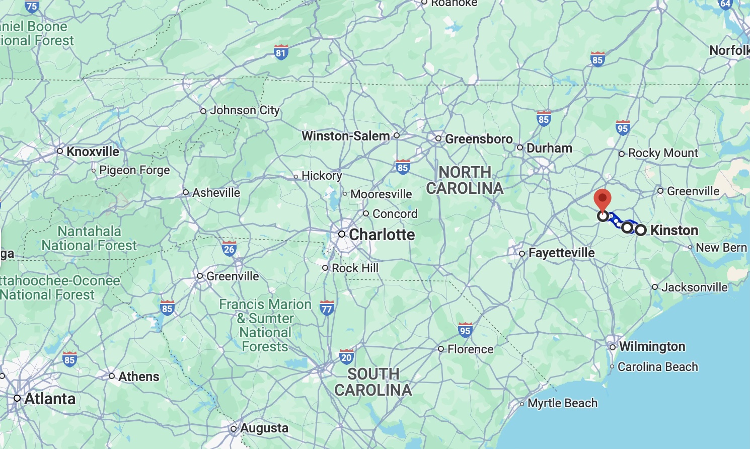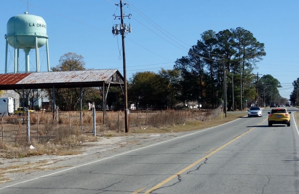The only sizable town between Goldsboro and Kinston is La Grange NC, population 2,600.