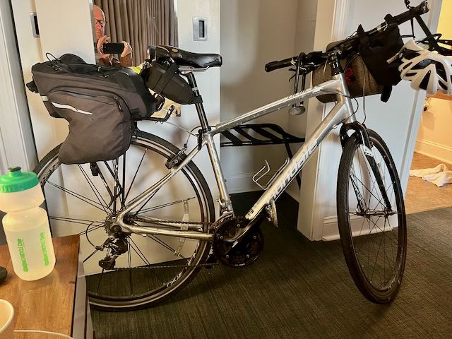 Back in my room I stared at Tootie’s bicycle. To the casual observer bicycles look alike but you get what you pay for. More than fifteen years ago we spent $1600.00 on this Cannondale even though Cannondale then sold another bike looking almost the same for less than half that. Our more expensive model had higher quality components; better wheels, gears, bearings, and brakes. Its Group 105 brand shifters just work more smoothly. With only perfunctory maintenance this bike still runs like a watch. Tootie has ridden it on more than one tour in Europe.