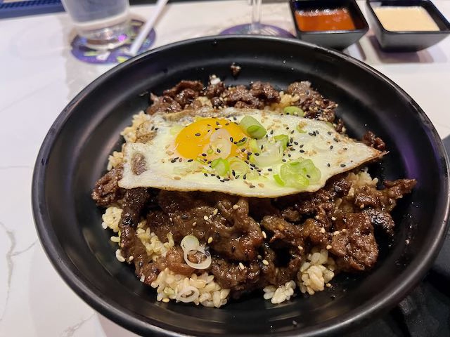 This was my first time having the Korean dish bulgogi. Heavily marinated fried beef strips over brown rice, topped with a fried egg were totally delicious.