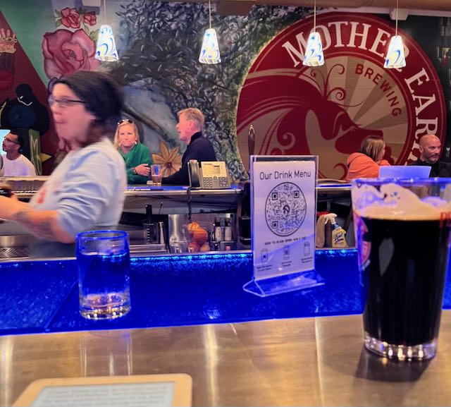 About six o’clock I walked several blocks to the Mother Earth Brewery, owned by the same people. There was a lively bar scene. Despite this being the rural South I saw more than one multiracial couple, likely more than one would see in liberal Chapel Hill. Times have changed.