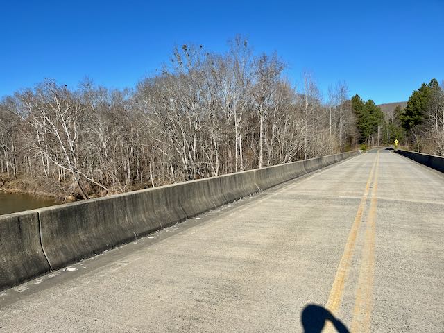 If you want to avoid bicycling on the big highway US-15-501 the only way across the Haw River is Chicken Bridge Road. I have cycled on it many times. They replaced the bridge with a wider and fancier model about ten years ago.