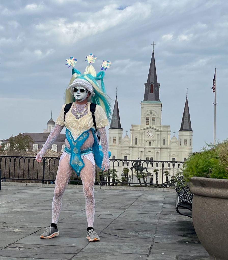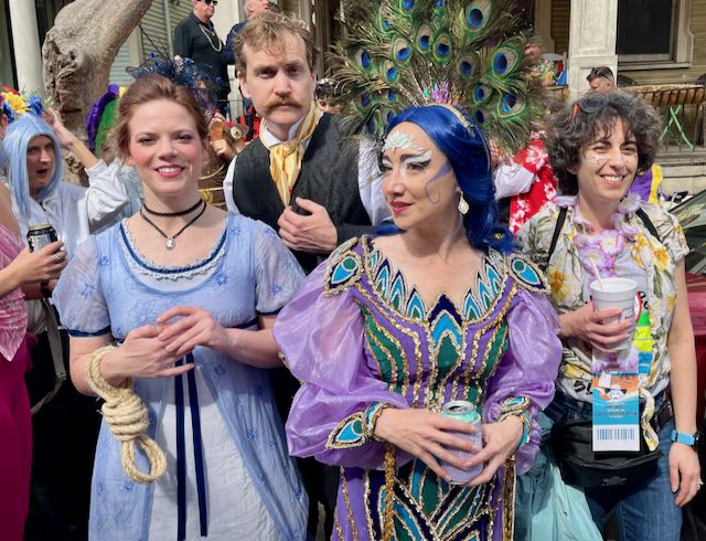 We eventually did find crowds. The thrill of the day is just walking around the Quarter and Faubourg Marigny, looking at people and being part of a scene. Essentially everyone was masked, in costume.