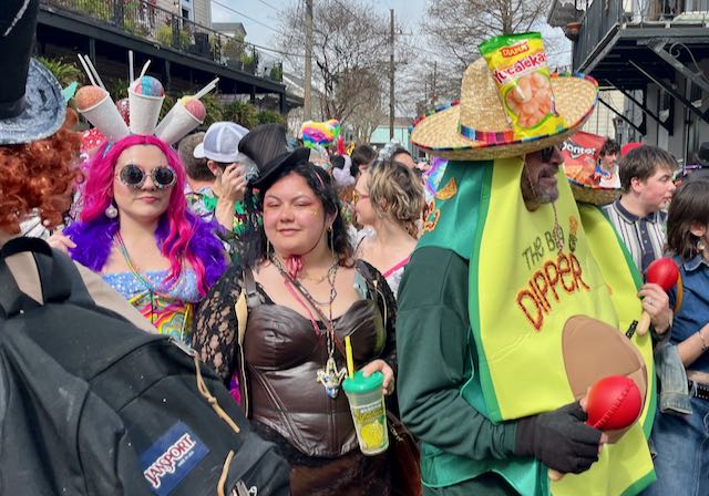 Nevertheless CW does reflect on a more active method of celebration than “just” watching a parade. The most intense Mardi Gras experience is the unplanned chaos of the French Quarter on Mardi Gras Day.