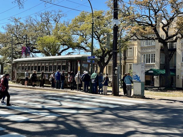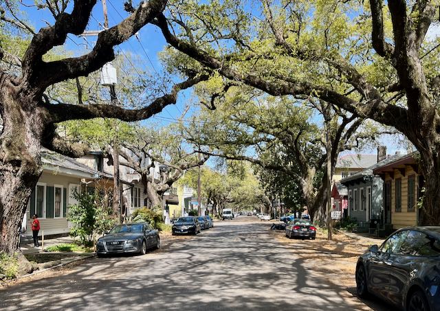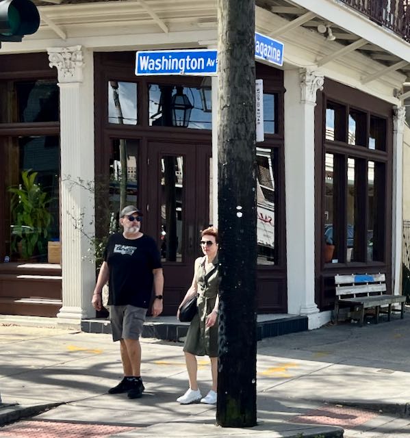 Two blocks later Washington Avenue crosses the wide St. Charles Avenue. From there you can take the St Charles streetcar three miles uptown to Tulane University or two miles downtown to Canal Street and the French Quarter.